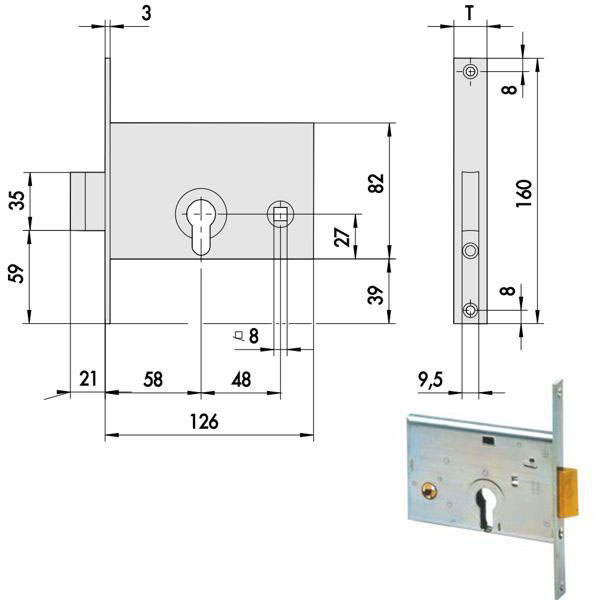 Serratura fasce alluminio infilare Scrocco catenaccio incorporato reversibile Catenaccio 1 mandata Zincata – Ambidestra Cilindro non incluso Scatola 44 – Frontale 16×160